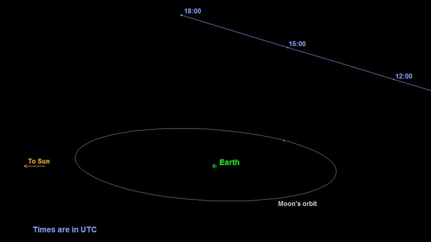 O asteróide vai passar pela Terra a uma distância 1,3 vezes a que separa o nosso planeta da Lua, de acordo com cálculos dos astrónomos. Uma distância que, apesar de tudo, é próxima em termos cósmicos.