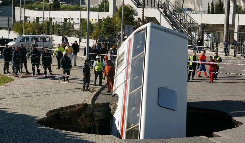 Em Lisboa, decorria o ano de 2003, um outro fenómeno, desta vez provocado por uma rutura do caneiro de Alcantra, na zona de Campolide, gerou um enorme buraco, com cerca de sete metros de diâmetro e 20 de profundidade, que "engoliu", literalmente, um autocarro.