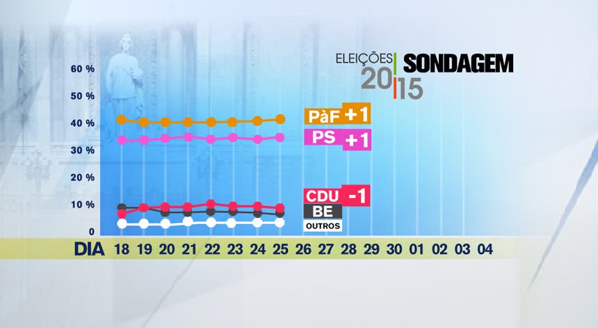 Coligação conserva vantagem de sete pontos na sondagem diária da RTP