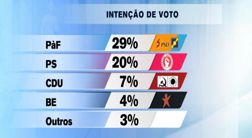 A recuperação dos socialistas faz-se notar de forma mais evidente no capítulo da intenção direta de voto: o PS ganha um ponto e chega aos 20 por cento; a coligação PSD/CDS-PP perde um ponto para ter 29 por cento.