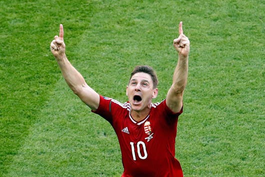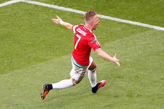 O jogador português, que joga agora na Turquia, isolou-se e rematou entre o poste e Gábor Király, empatando a partida.