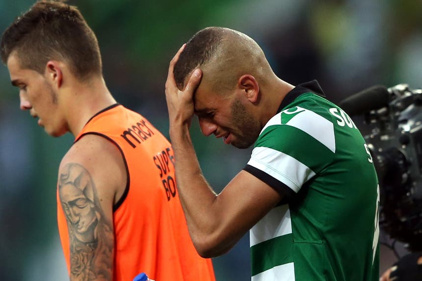O avançado argelino, que é dado pela imprensa como alvo do Leicester, campeão inglês, acenou aos adeptos 'leoninos' e não evitou as lágrimas quando recolhia aos balneários, depois de ter marcado um dos golos do triunfo que colocou o Sporting isolado no comando da I Liga.