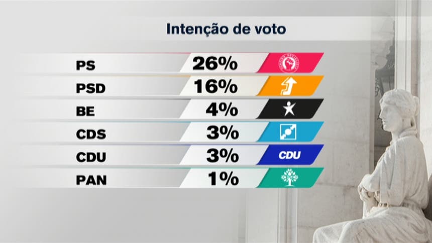 O PSD teria agora 30% e o CDS-PP 6%, quando há um ano tinham juntos 41%.