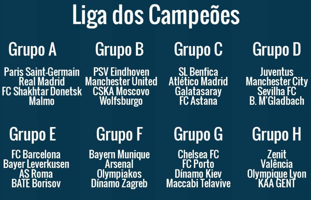Constituição dos grupos da Liga dos Campeões: