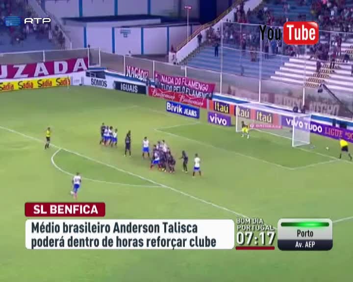 O Benfica está muito perto de contratar mais um jogador brasileiro. Chama-se Anderson Talisca, tem 20 anos e é médio ofensivo. Joga no Bahia. Vai custar quatro milhões de euros e deve assinar um contrato de cinco anos.