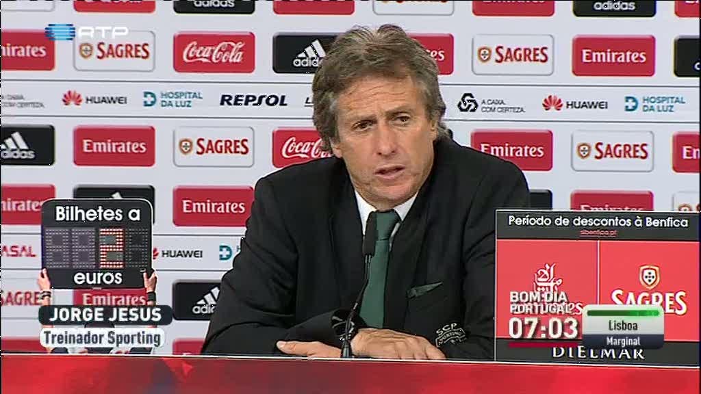 Após a vitória clara do Sporting frente ao Benfica Jorge Jesus, treinador do Sporting, fazia a sehuinte leitura do triunfo: "Hoje assistimos a um grande jogo do Sporting. Foi uma equipa com um conhecimento muito forte do que tinha de fazer quando tinha a bola ou quando estava em processo defensivo. Sabíamos que vínhamos jogar com uma grande equipa e desenvolvemos algumas estratégias de jogo que funcionaram bem e os golos foram o tónico para que as coisas ficassem mais fáceis e moralizassem a equipa do Sporting. Ganhar por 3-0 ao intervalo no Estádio da Luz não é normal. Ainda não tinha nascido na última vez que o Sporting tinha ganhado aqui por uma vantagem de três golos".
