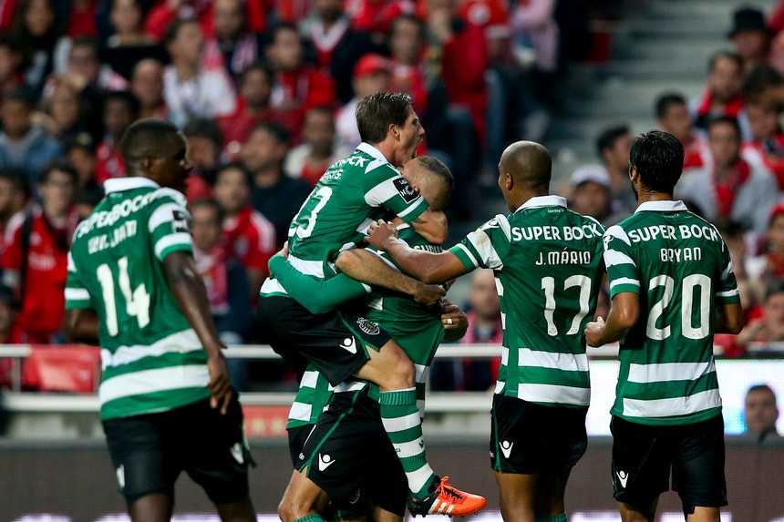 Em menos de 30 minutos, o Sporting marcou três golos ao bicampeão nacional, através de Teo Gutiérrez (09), Slimani (21) e Bryan Ruiz (36), sentenciou o dérbi da oitava jornada.