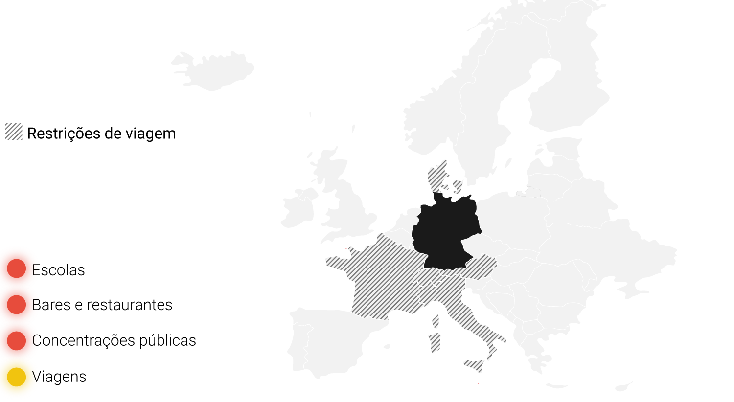 A Alemanha está a restringir a entrada de pessoas nas fronteiras com a Áustria, Suíça, França, Luxemburgo e Dinamarca.