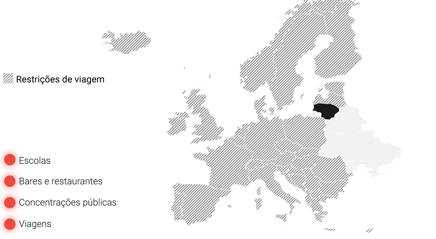 Os cidadãos lituanos estão proibidos de deixar o país, exceto em viagens de negócios. A proibição tem exceções para motoristas, diplomatas e pessoas que passam pelo país a caminho de casa.