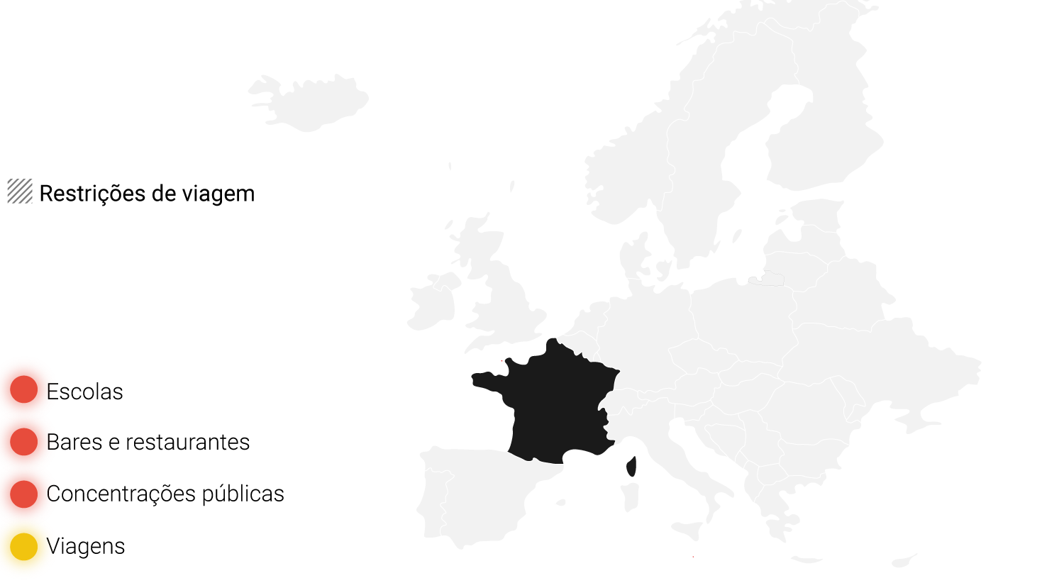 As fronteiras externas com países não Schengen estão fechadas e todas as viagens estão proibidas dentro do território francês.