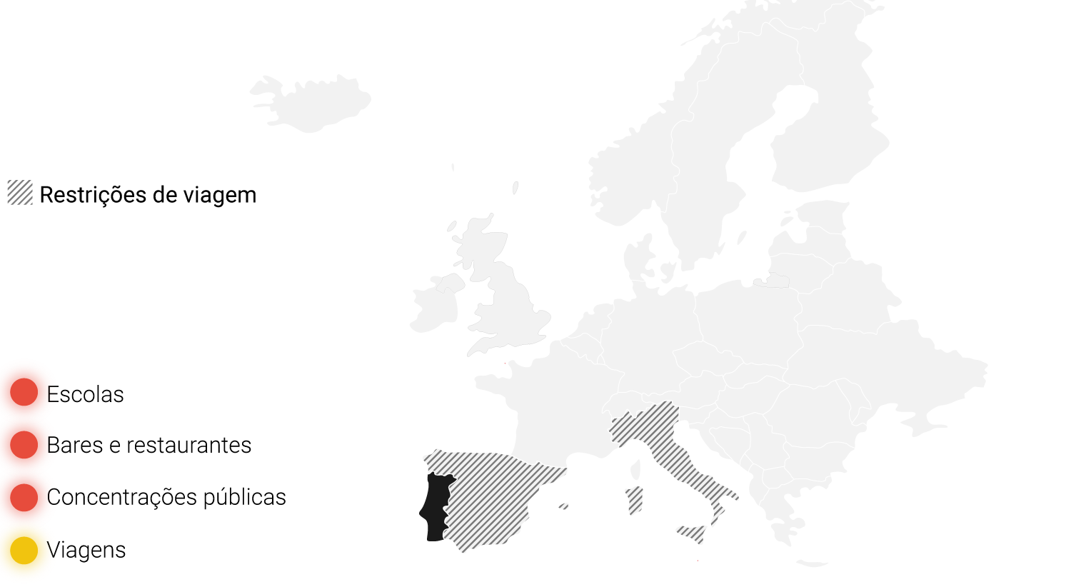 Todas as viagens consideradas não essenciais a qualquer um destes países foram restritas. Ao mesmo tempo, cada país europeu aumentou o controlo fronteiriço nacional e promulgou severas restrições à vida pública, encerrando escolas e serviços e apelando ao isolamento social.