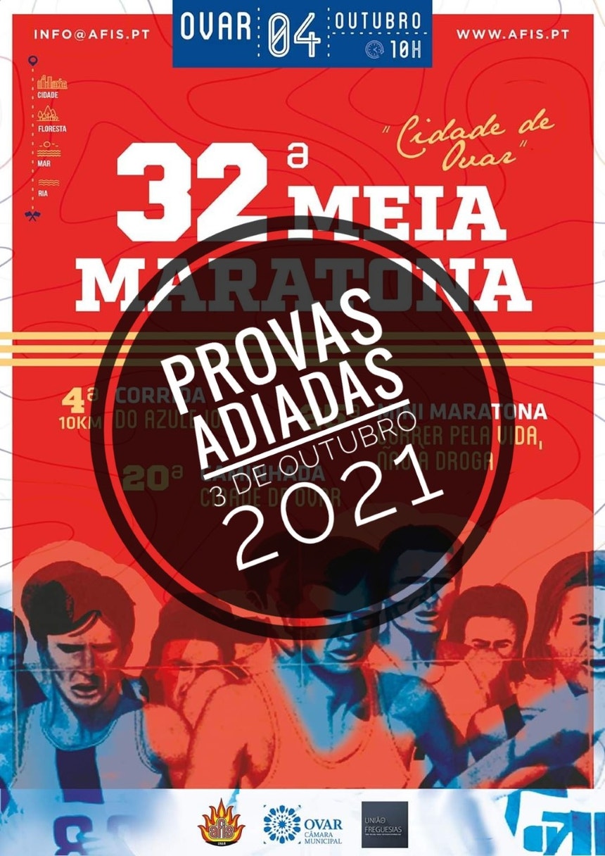 O AFIS/Ovar, em articulação com as autoridades competentes, tomou a decisão de adiar a 32.ª Meia-Maratona “Cidade de Ovar” e todas as provas com ela relacionadas, para dia 3 de outubro de 2021.