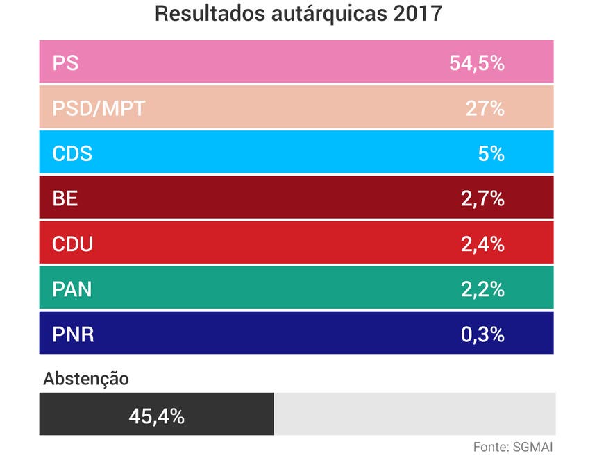 Por fim, lembramos também os resultados de há quatro anos, nas Eleições Autárquicas de 1 de outubro de 2017.