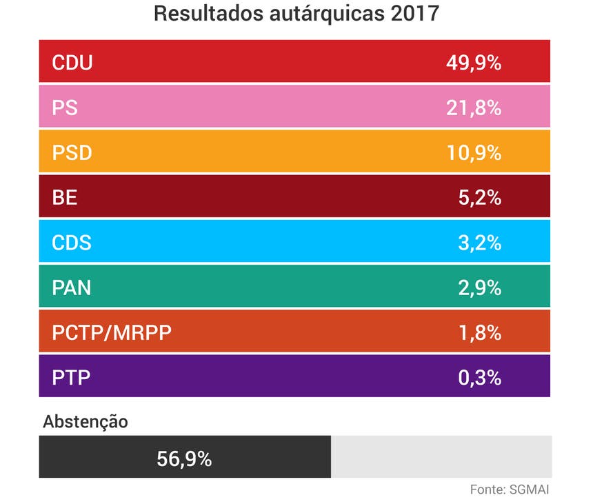 Por fim, lembramos também os resultados de há quatro anos, nas Eleições Autárquicas de 1 de outubro de 2017.