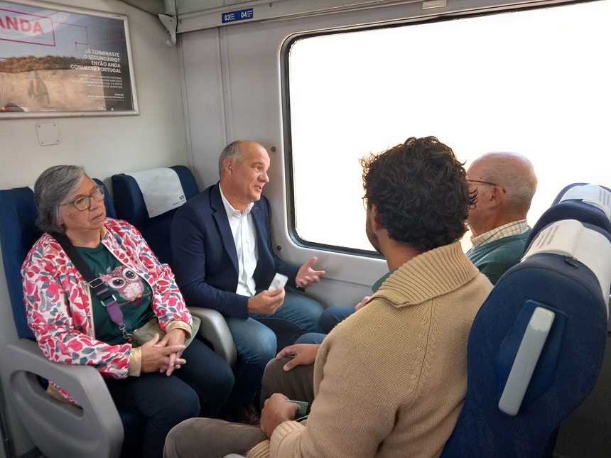Paulo Raimundo viajou de Comboio entre o Bombarral e as Caldas da Rainha para denunciar as condições da Linha do Oeste e prometer que com a CDU se vai passar da "máquina a vapor" à "alta velocidade".