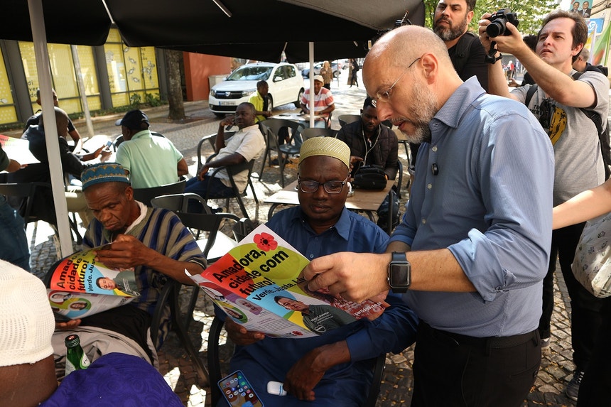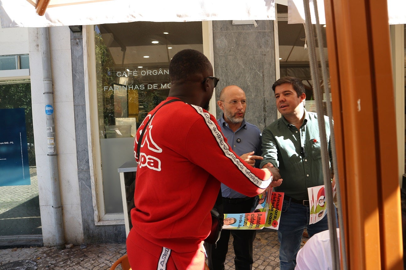 Lamine ficou com os contactos das estruturas locais e o negócio foi selado com um aperto de mão entre ele e o porta-voz do Livre, gesto que se repetiu com o candidato à Câmara Hugo Lourenço.