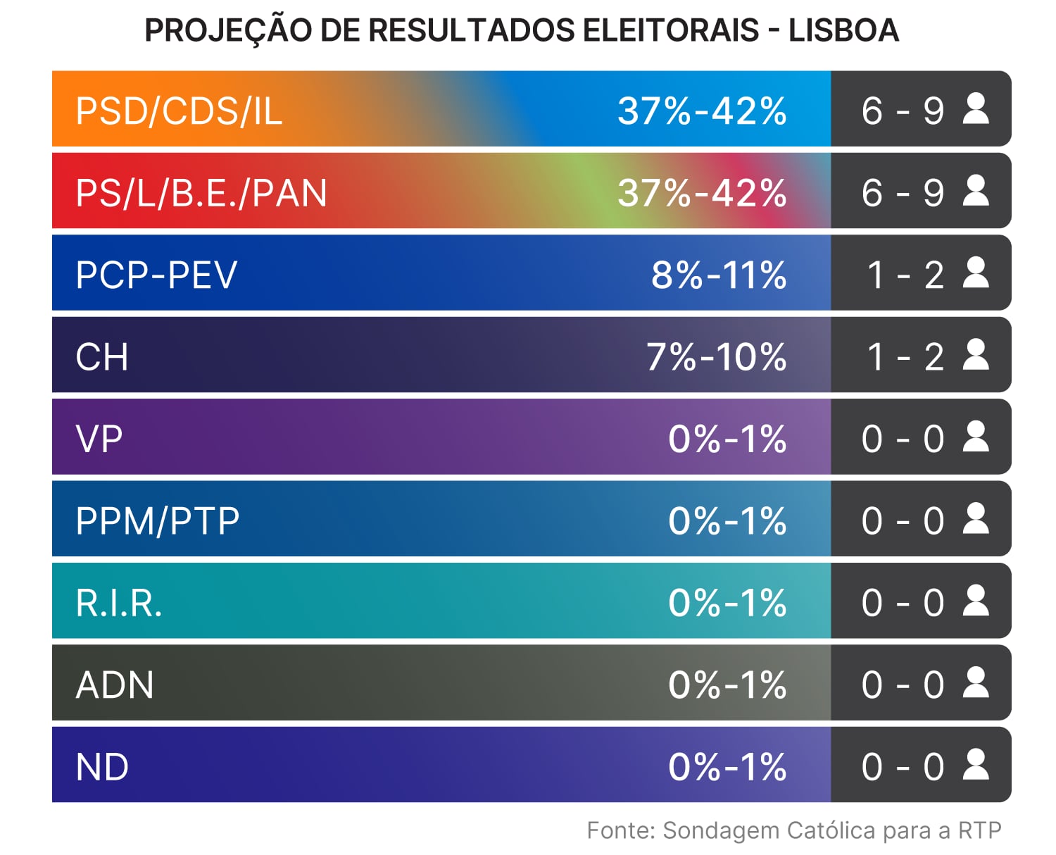 Projeção da Católica aponta para empate técnico em Lisboa e no Porto