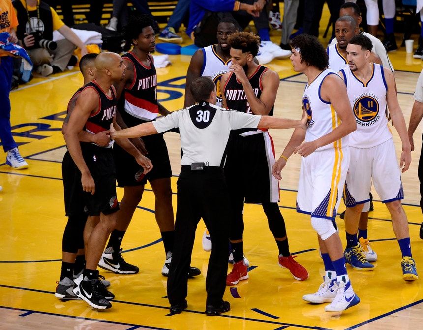 Aos Blazers, quintos da fase regular do Oeste, de pouco valeu a grande exibição do base Damian Lillard, autor de 30 pontos, o dobro dos alcançados pelos segundos melhores marcadores da equipa, Allen Crabbe e Al-Farouq Aminu.
