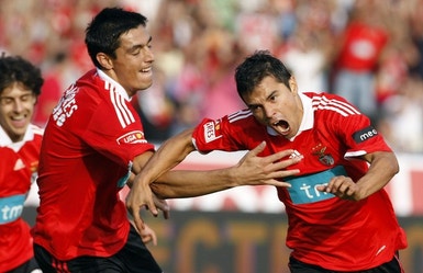 Quim; Maxi Pereira, David Luiz, Sidnei, Fábio Coentrão; Javi García, Ruben Amorim, Aimar, Di María; Weldon, Cardozo