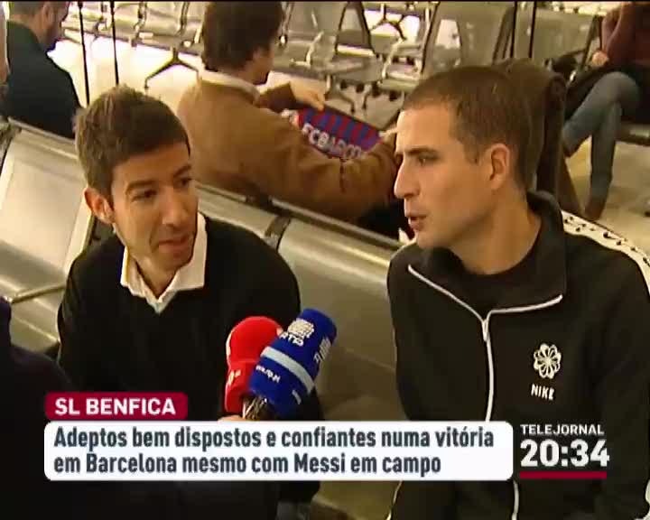 Alguns adeptos especiais viajaram com a comitiva do Benfica para Barcelona. A boa disposição não podia ser maior, mesmo quando o assunto é a estrela do adversário Messi.