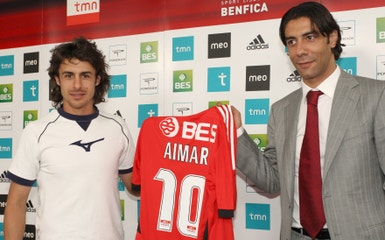 O médio ofensivo argentino Pablo Aimar, que vai "herdar" a camisola 10, de Rui Costa, foi apresentado como jogador "encarnado", depois de anúncios e desmentidos sobre a sua contratação ao Saragoça, caído na II Divisão espanhola