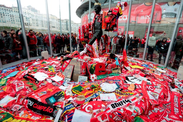Eusébio da Silva Ferreira morreu há um ano contava 71 anos. A perpetuar a memória do maior jogador português de todos os tempos lá está a estátua do futebolista no memorial à entrada do Estádio da Luz, da autoria do norte-americano Daker Bower, inaugurada em 1992.
