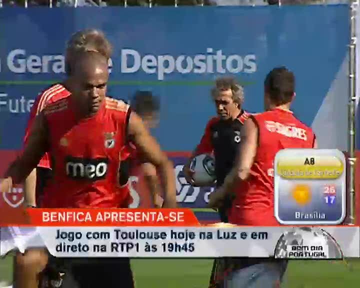 O Benfica apresenta-se hoje aos sócios no Estádio da Luz. Os encarnados defrontam os franceses do Toulouse. O guarda redes Eduardo deverá vestir a camisola do Benfica pela 1ª vez, o mesmo poderá acontecer com o central Garay e com os laterais Capedevila e Emerson. O jogo de apresentação aos sócios está marcado para as 19.45 horas e tem transmissão directa na RTP1.