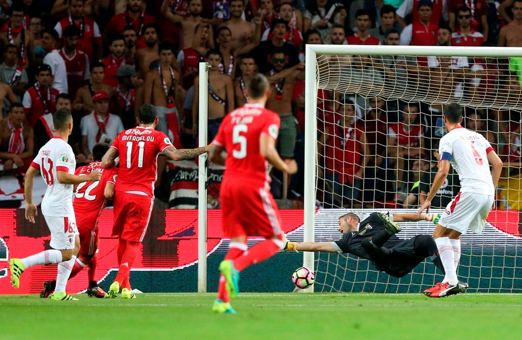 A equipa de Rui Vitória, sem Eliseu, Ederson, Jardel e André Almeida, contou, na defesa, com o guarda-redes Júlio César, Luisão e Lindelof a centrais, Grimaldo e Nelson Semedo nas laterais.