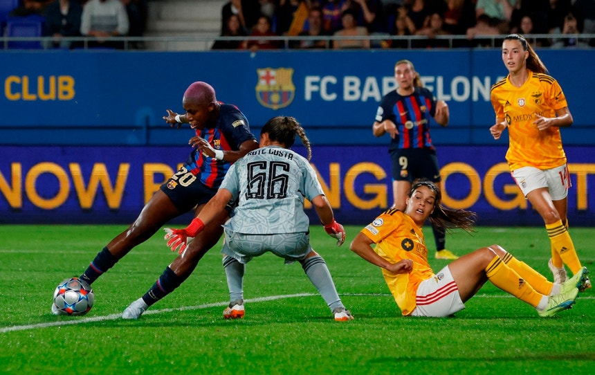 O bicampeão nacional em título Benfica foi esta noite goleado no reduto do FC Barcelona, vice-campeão europeu em 2021/22, por 9-0, na estreia no Grupo D da Liga dos Campeões feminina de futebol.
