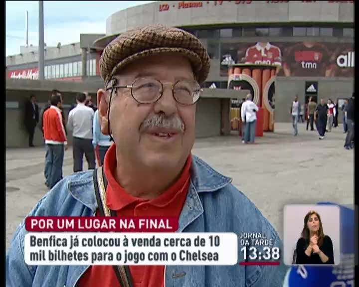 O Benfica colocou esta manhã à venda quase dez mil bilhetes para a final da Liga Europa, em Amesterdão. E uma hora antes de as bilheteiras abrirem a fila já era extensa.
