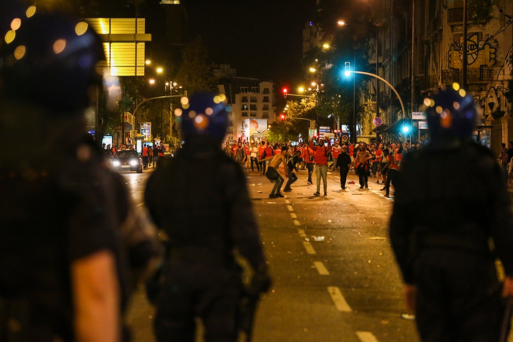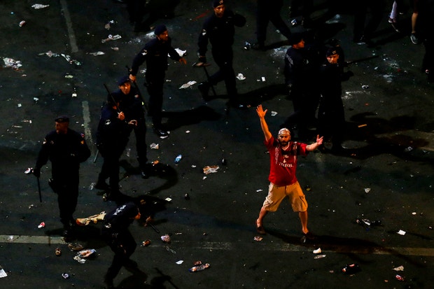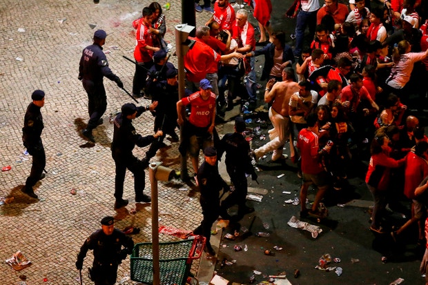 Os festejos da conquista do título de campeão nacional de futebol do Benfica ficaram manchados por confrontos entre a polícia e adeptos.