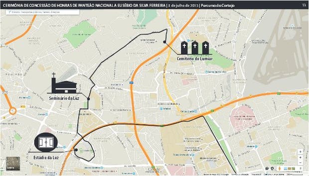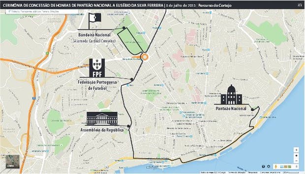 Depois do Estádio do Benfica, a viagem seguirá e terá passagens pela Federação Portuguesa de Futebol e Assembleia da República, antes de chegar ao Panteão Nacional, no Campo de Santa Clara.
