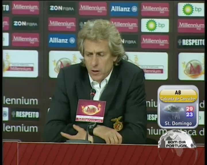 Benfica Jesus fala em jogo equilibrado Jorge Jesus considera que o jogo foi equilibrado, mas que o Porto aproveitou bem o recuo do Benfica. RTP / VER MAIS PUB