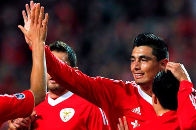 32' - Cardozo falha um golo "impossível" de falhar! Witsel abriu na direita para Rodrigo que faz o cruzamento para a área onde o paraguaio só tinha que encostar com a baliza deserta e o avançado sem qualquer marcação. Cardozo rematou a um ou dois metros da baliza mas ao lado! Como é possível?