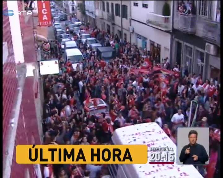 A conquista do 33.º título do Benfica foi festejada pelos adeptos ‘encarnados’ espalhados pelo país e pelo mundo. Para além do mar vermelho que inundou a zona envolvente à rotunda do Marquês, em Lisboa, houve festa em vários pontos de Portugal e no estrangeiro.