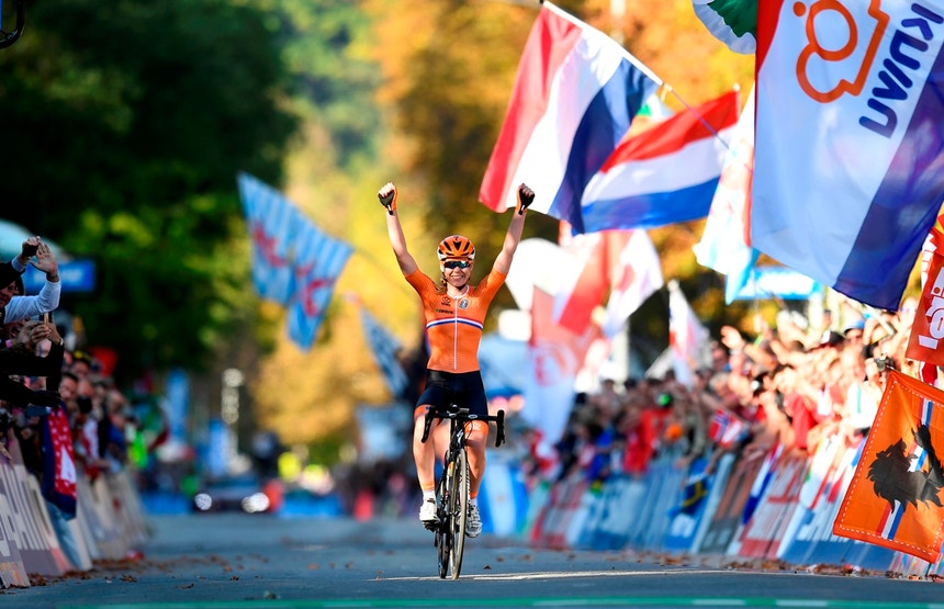 Van der Breggen, de 28 anos, campeã olímpica em título, conquistou a terceira medalha nos Mundiais de estrada, a primeira de ouro, depois de ter terminado em segundo lugar nas provas de contrarrelógio individual – atrás da compatriota Annemiek Van Vleuten - e por equipas.