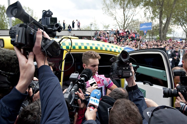 do lituano Ramunas Navardauskas (Garmin-Barracuda), que entrou em colapso no constante sobe e desce dos 210 quilómetros, entre Urbino e Porto Sant'Elpidio, e perdeu mais de 15 minutos.