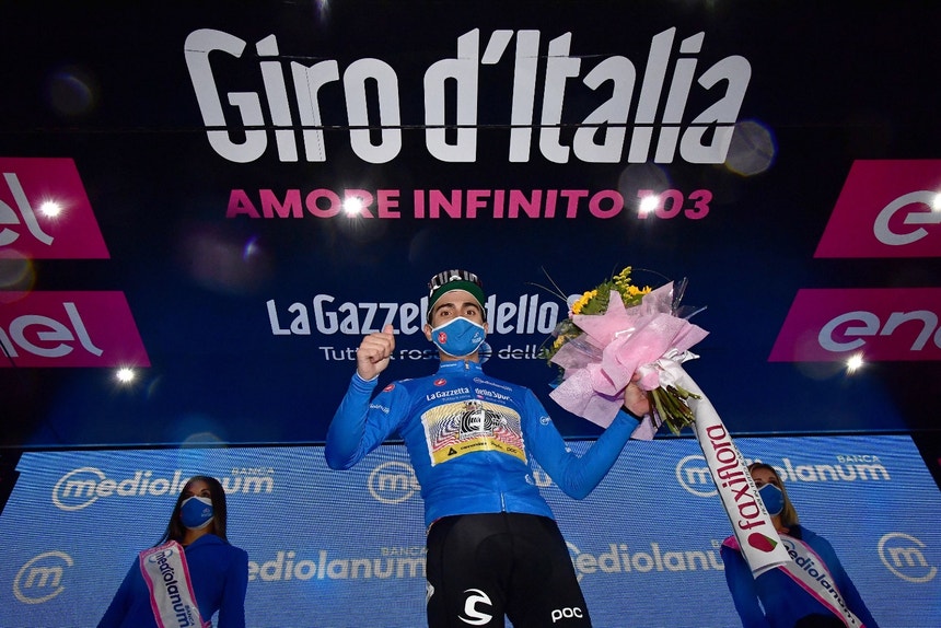 Depois do dia de hoje, em que o ciclista português, que já tinha vencido a nona etapa, somou 36 pontos, sobram 98 pontos que um ciclista pode somar até domingo, em Milão, e todos apenas no sábado, com duas subidas de primeira categoria (40 pontos cada) e uma de segunda (18).