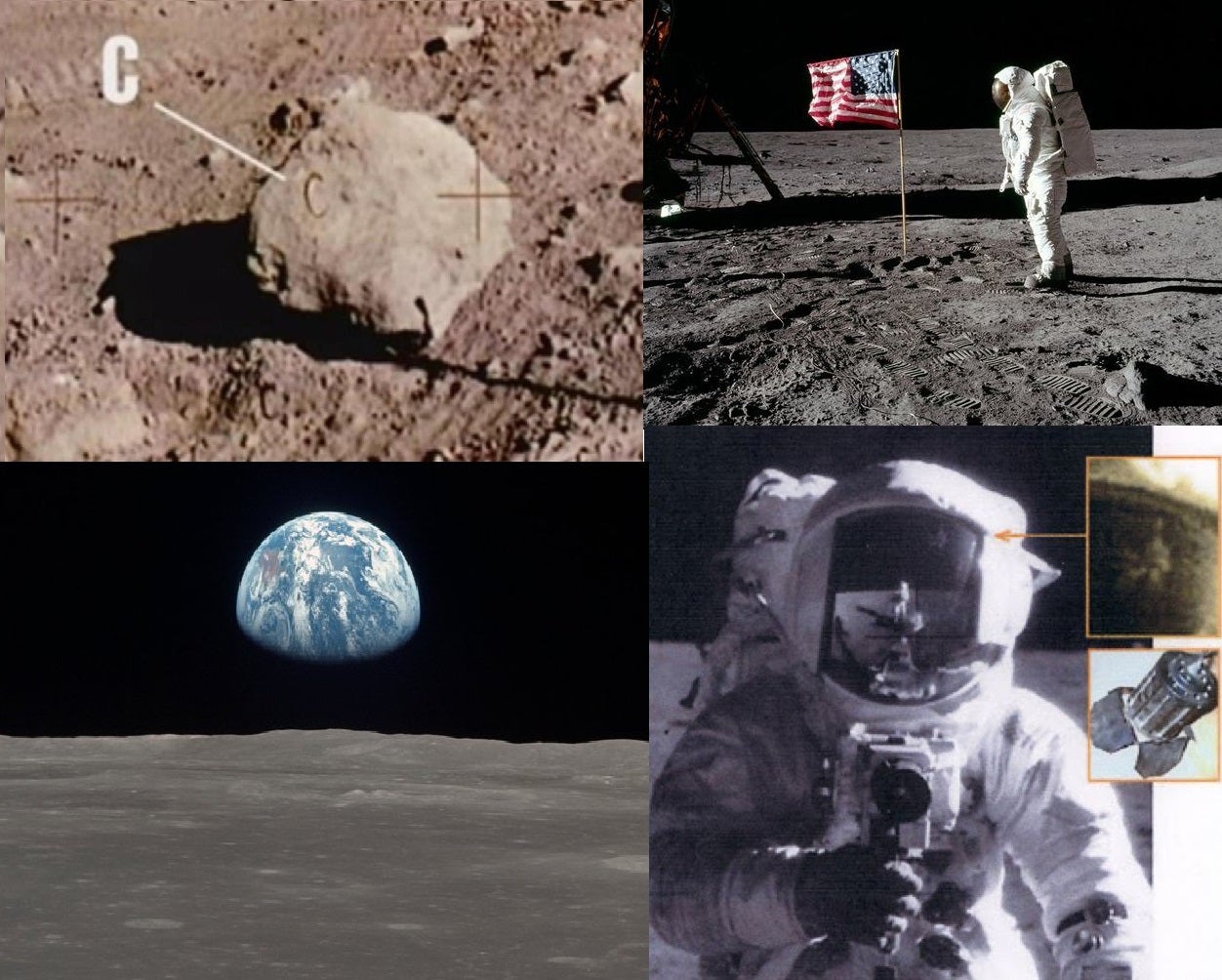 Muitas são as provas apresentadas que alimentam esta teoria: fotos que mostram projetores, pedras com letras no solo lunar, a questão do vento na bandeira americana, a falta de estrelas no céu, enfim, provas que não provam a veracidade de quem as tirou ou manipulou e que ainda hoje alimentam as partilhas na internet.