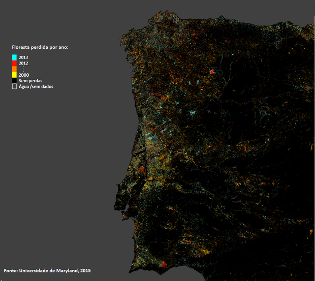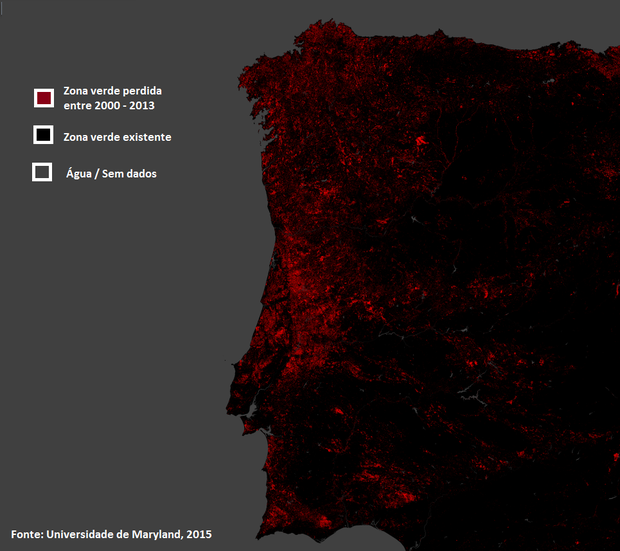 Nos gráficos apresentados, retirados de observações feitas pelo satélite "Landsat" nos últimos anos pode-se verificar as diferenças ocorridas no solo português.