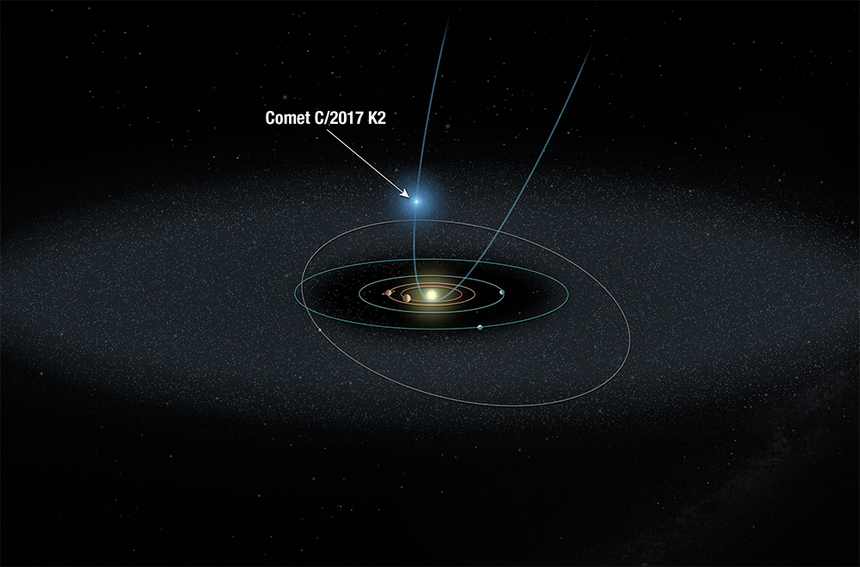 Segundo os cientistas que agora estudam o cometa proveniente da distante nuvem de Oort, o K2 está ainda em plena fase inicial de atividade.A Nuvem de Oort, também chamada de Nuvem de Öpik-Oort, é uma hipotética nuvem esférica com cerca de um ano luz de diâmetro, situada no limite do Sistema Solar, constituída por inúmeros objetos celestes, tais como cometas e asteróides. Estes corpos celestes orbitam em redor do Sol, apesar de se situarem muito longe da estrela.