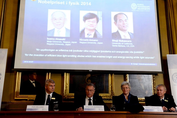 "Grande benefício para a humanidade"Enquanto Isamu Akasaki e Hiroshi Amano desenvolviam em conjunto as suas investigações na Universidade de Nagóia, no Japão, Shuji Nakamura trabalhava numa pequena empresa de Tokushima, a Nichia Corporation, indústria de engenharia química japonesa, onde acabaram por obter sucesso "quando todos os outros falhavam", dizia o Comité científico do prémio num comunicado.