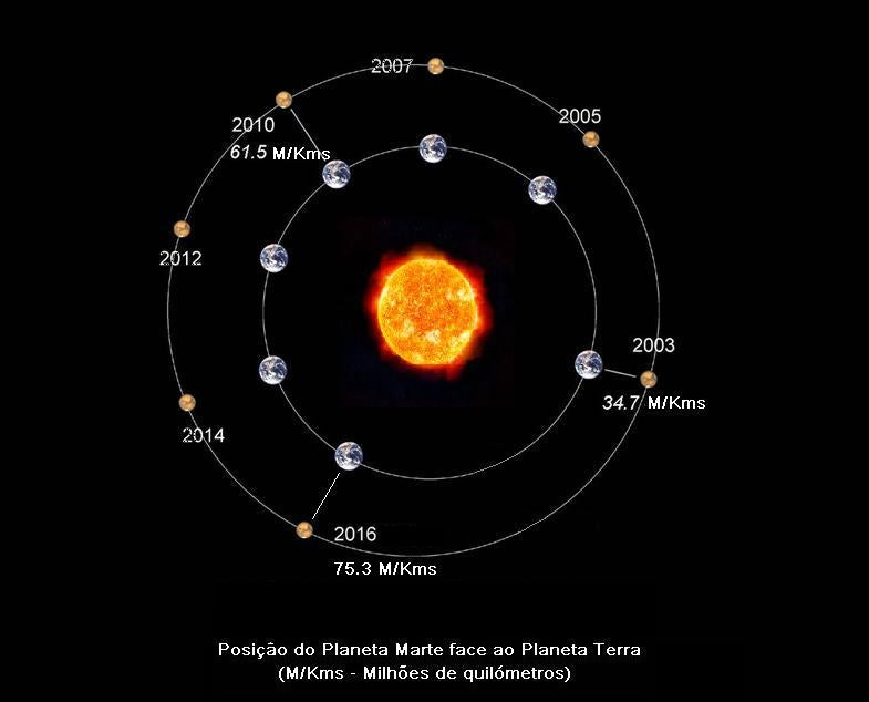 A aproximação entre Marte e a Terra ocorre a cada dois anos e dois meses.