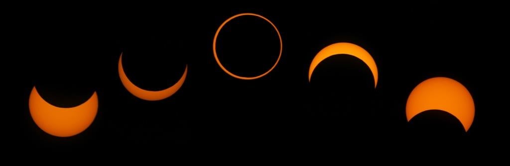 Fases de um eclipse solar em que a Lua tapa a luz solar à Terra. Reuters/DR