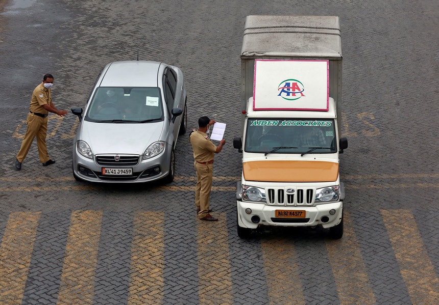 Apesar de o primeiro-ministro ter garantido que os bens essenciais seriam mantidos - e depois de vários Estados indianos terem encerrado as suas fronteiras - foi visível nas estradas longas filas de camiões carregados de leite, frutas e legumes.