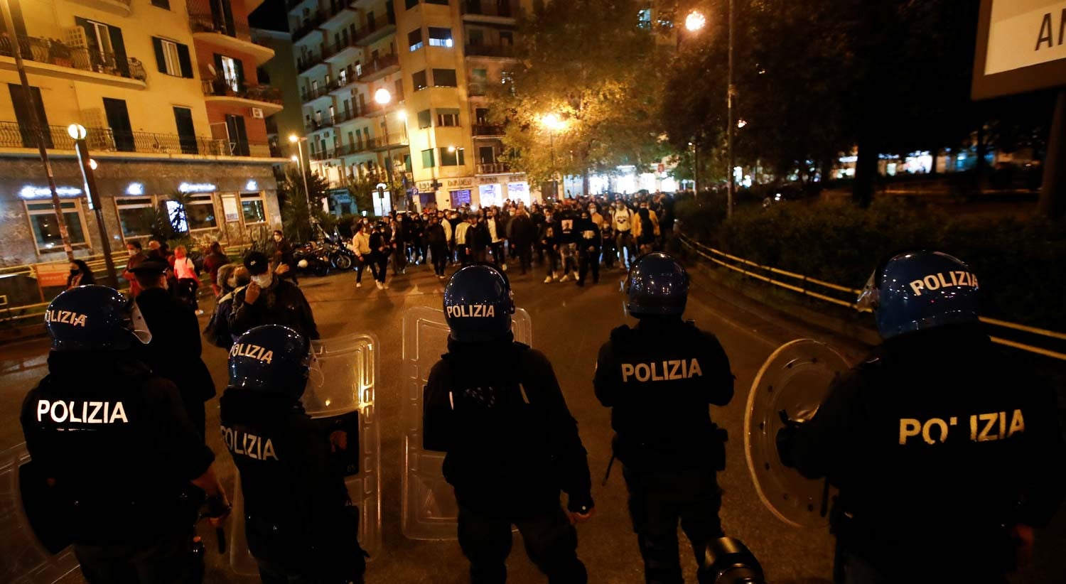 Os protestos explodiram por toda a Itália, esta segunda-feira, contra as restrições do Governo para conter o novo coronavírus que continua a contaminar a um nível alarmante no país.