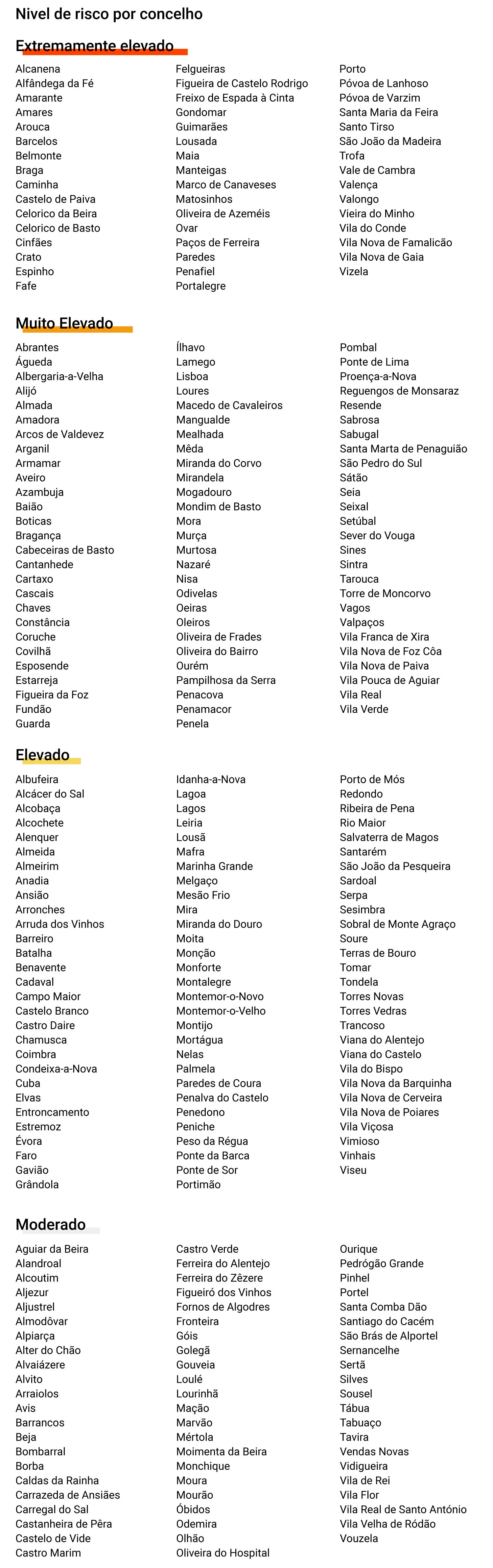 - Risco Extremamente Elevado em concelhos com mais de 960 casos por 100 mil habitantes.