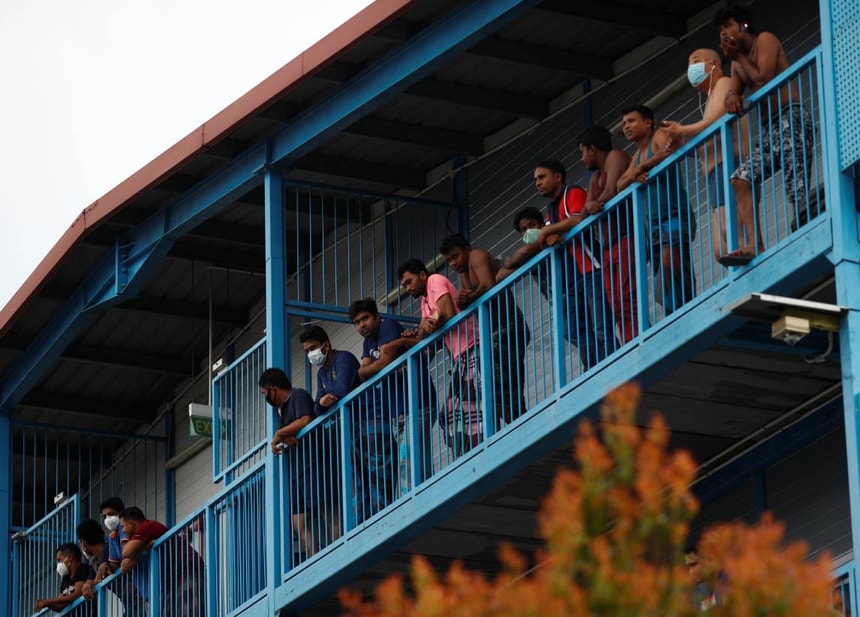 Centenas de milhares de trabalhadores imigrantes estão, por isso, em quarentena nestes dormitórios onde surgem centenas de novos casos a cada dia. Vários milhares de outros trabalhadores foram transferidos para outros locais para reduzir a aglomeração. Estes trabalhadores estrangeiros foram colocados de parte da rede de segurança do país, apesar de existirem regulamentos que garantem condições mínimas no local de trabalho e cobertura de assistência médica.