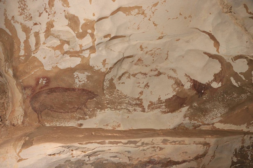 O javali retratado nas paredes da caverna de Leang Tedongnge tem 136 centímetros de largura e 54 de altura.