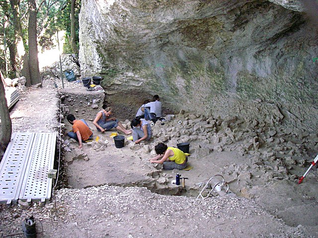 Na estratigrafia do abrigo - na camada por de baixo da E - estão identificados fragmentos de dentes e instrumentos de pedra lascada correspondentes a 20 mil anos de ocupação Neandertal.